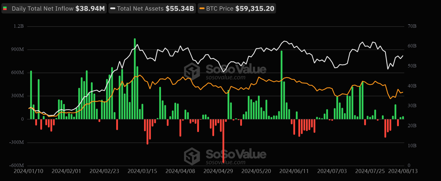Apesar desses investimentos significativos, o desempenho de curto prazo dos ETFs de Bitcoin à vista foi um tanto moderado. Dados da SoSo Value, por exemplo, mostram que os ETFs de Bitcoin à vista registraram uma entrada total de US$ 66,8 milhões nos últimos dois dias de trading.
