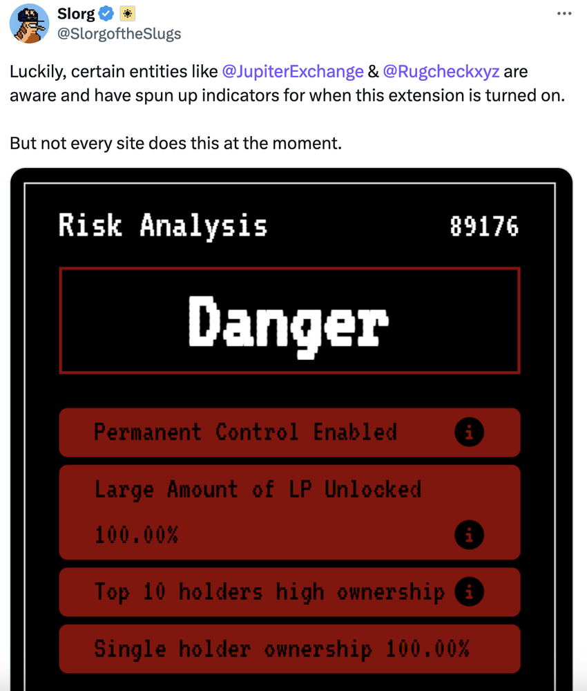 Algumas exchanges e serviços, como a Jupiter Exchange e a Rugcheck, já implementaram indicadores que alertam sobre a presença de um Permanent Delegate no token. No entanto, nem todas as plataformas possuem essa funcionalidade.