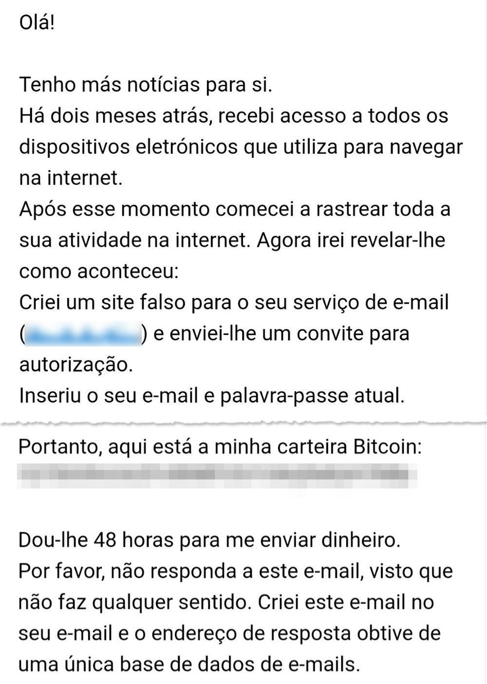 As ameaças, no entanto, são falsas. Nesta ofensiva, as vítimas recebem um e-mail informando que seu computador foi hackeado.