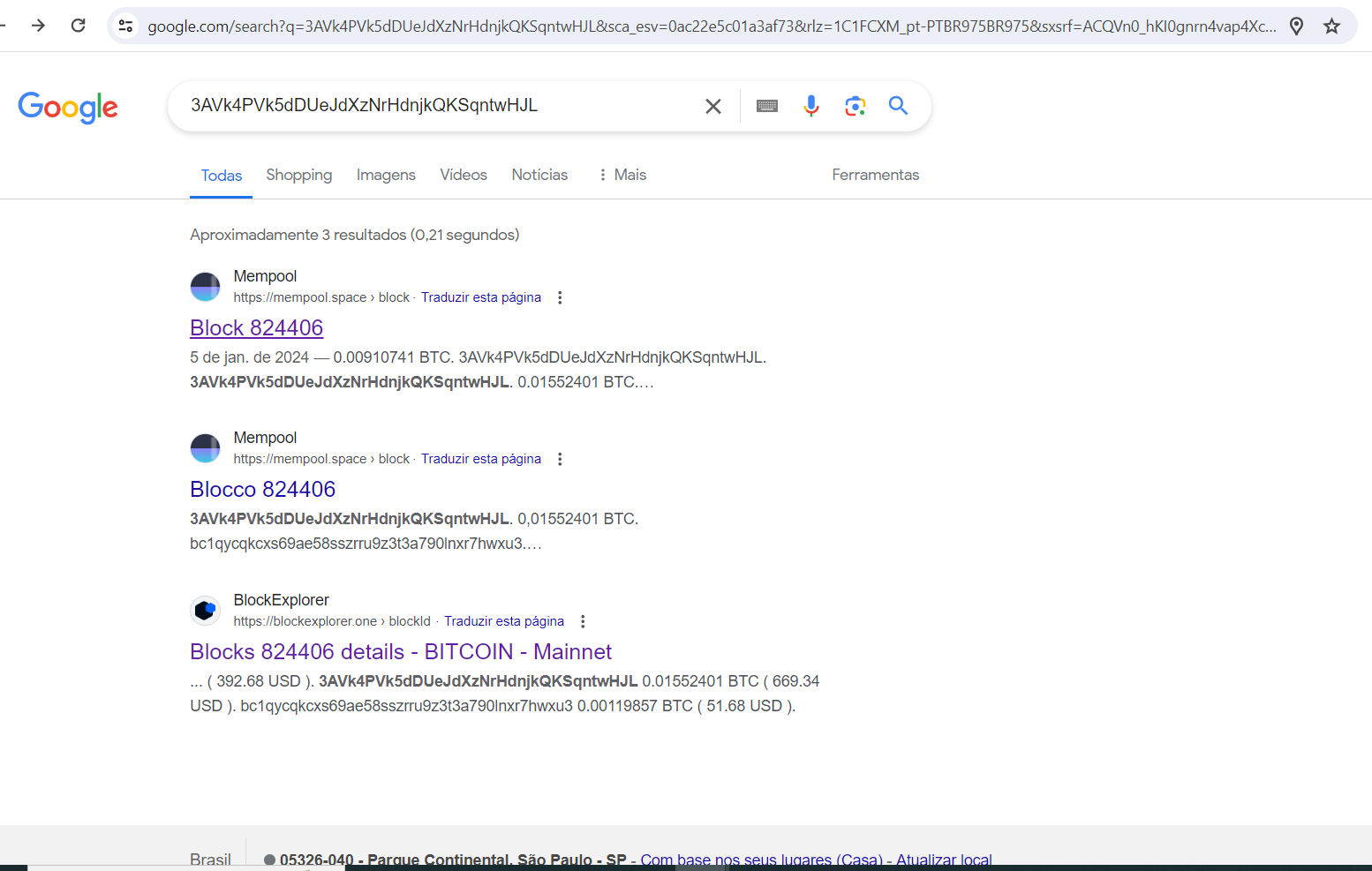 Os três formatos de endereços P2PKH, P2SH e Bech32 podem ser encontrados nas buscas em território americano no Google.