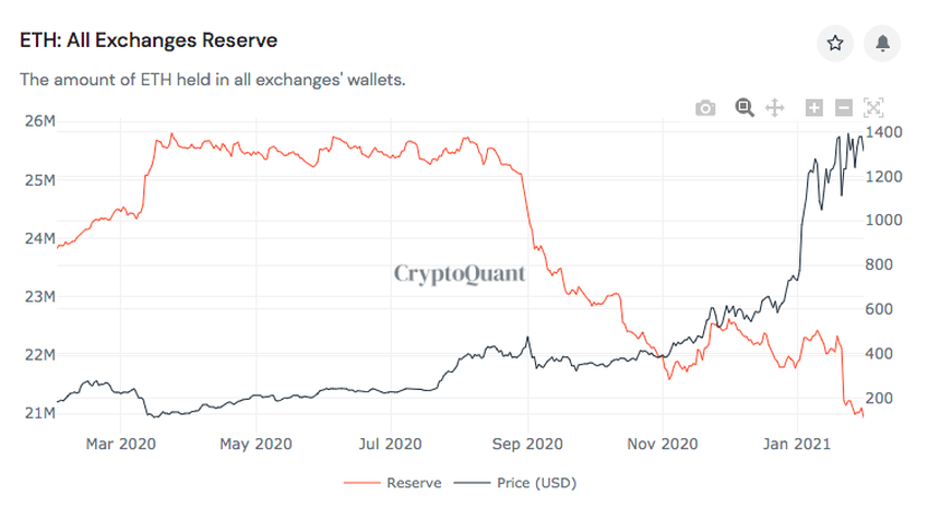 SponsoredNos últimos 30 dias, o total de ETH realizado nas exchanges atingiu uma mínima de 21 milhões, depois que quase 4 milhões deixaram as plataformas de negociação. Isso equivale a quase US $ 5 bilhões aos preços atuais. Essa queda realmente começou a acelerar a partir de setembro de 2020.