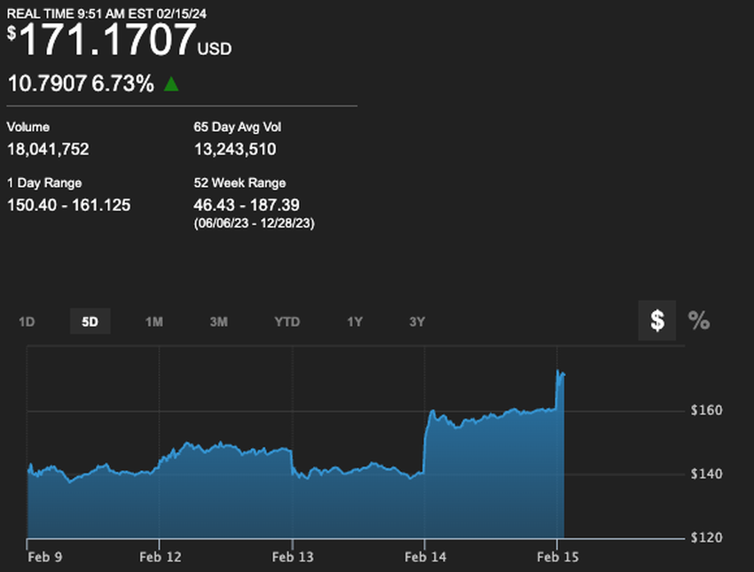 O preço da COIN realmente caiu em seguida, atingindo uma mínima de US$ 117,30 no dia 5 de fevereiro. Em seguida, elas cresceram até US$ 140,39 na terça-feira (13). Quando este artigo foi escrito, a COIN era negociada a US$ 165,67.