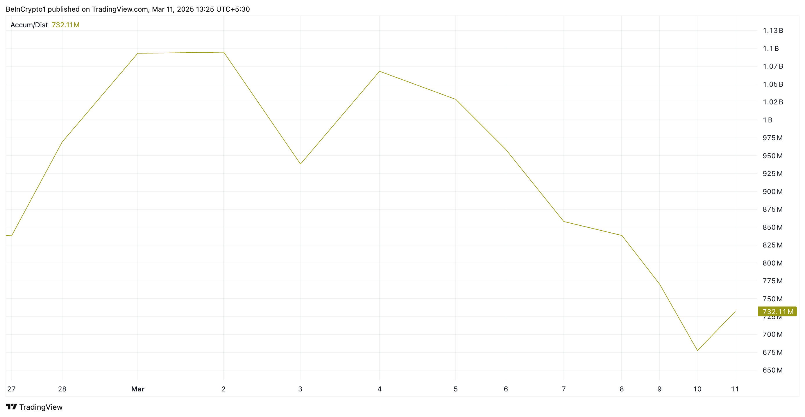 Assim como com a HBAR, uma tendência de queda persistente na Linha A/D sugere enfraquecimento da demanda e sinaliza mais quedas de preço no curto prazo.