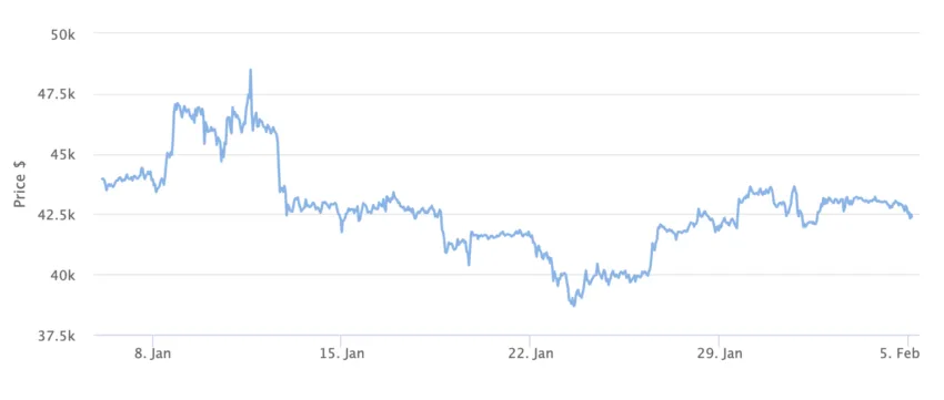 No momento da publicação, o BTC era negociado a US$ 42.441.