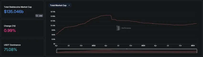 Stablecoins são frequentemente indexadas em 1:1 pareadas a moedas fiduciárias e apoiadas por reservas de dinheiro ou títulos. Esses ativos compreendem uma parte substancial do mercado de ativos digitais de US$ 1,7 trilhão. A capitalização de mercado da stablecoin é atualmente superior a US$ 135 bilhões em todas as cadeias.