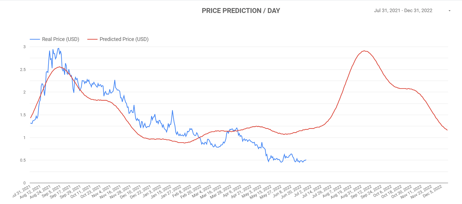 O modelo de previsão de preços é baseado na linguagem de programação PyTorch e ainda previu que, após atingir o nível de US$ 2,90 em setembro, a ADA terminará o ano sendo negociada a US$ 1,11. O algoritmo de previsão de preços utiliza uma estrutura de aprendizado de código aberto e é desenvolvido pela empresa NeuralProphet.