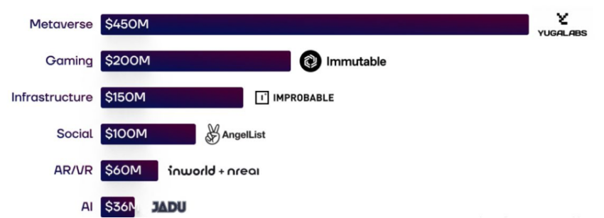 O relatório separou os valores em Jogos, Metaverso, Redes Sociais, Infraestrutura, Realidade Artificial e Realidade Virtual (RA e RV) e Inteligência Artificial (IA). Porém, com a crescente inovação e demanda, várias categorias ganharam destaque ao longo de 2022.