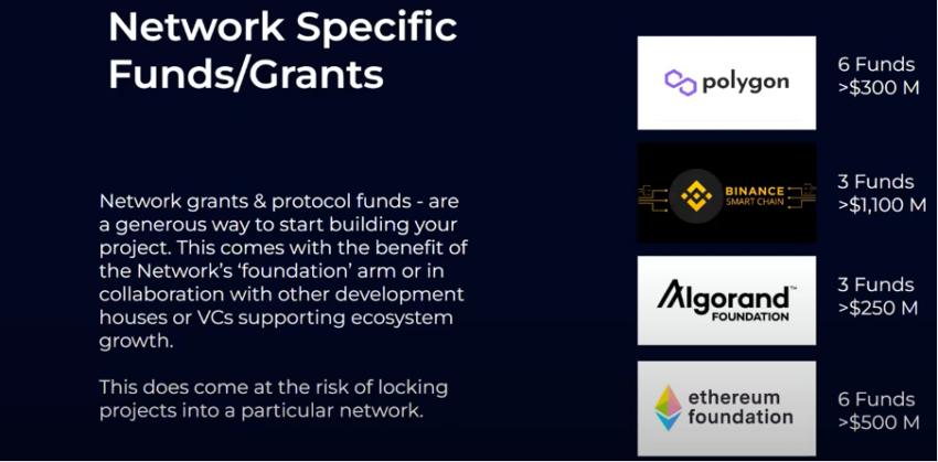 Enquanto isso, outras tendências incluíam instituições de ativos digitais de nível 1, como Binance Labs, Coinbase Ventures e Kraken Ventures, que estavam dirigindo ou reunindo fundos. Por fim, estão os fundos específicos das redes, conforme demonstrado abaixo.
