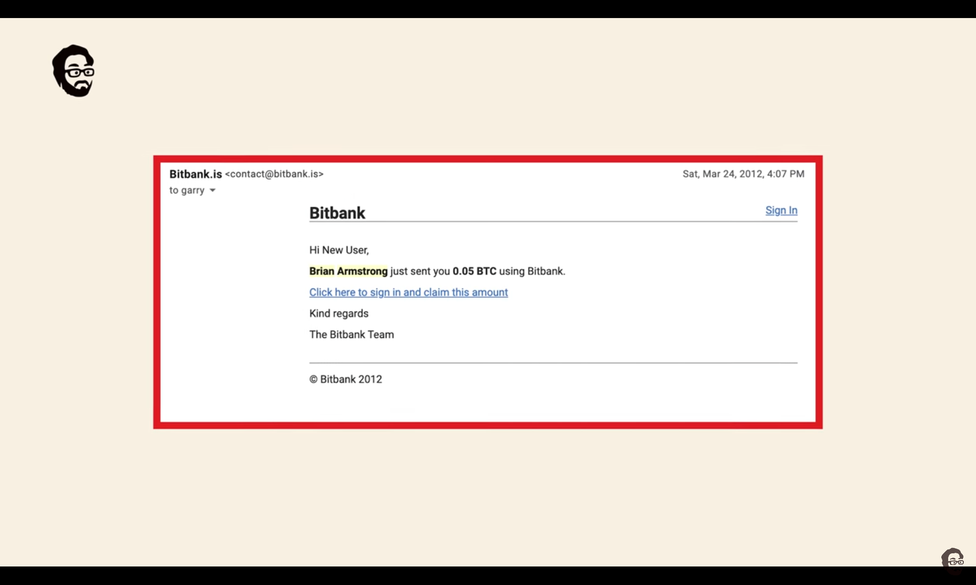 SponsoredAinda em 2012, Armstrong procurava parceiros para financiar a startup, que na época se chamava Bitbank. Para chamar a atenção de Tan, Armstrong lhe enviou um presente de BTC 0,05, que na época valiam cerca de US$ 0,23.
