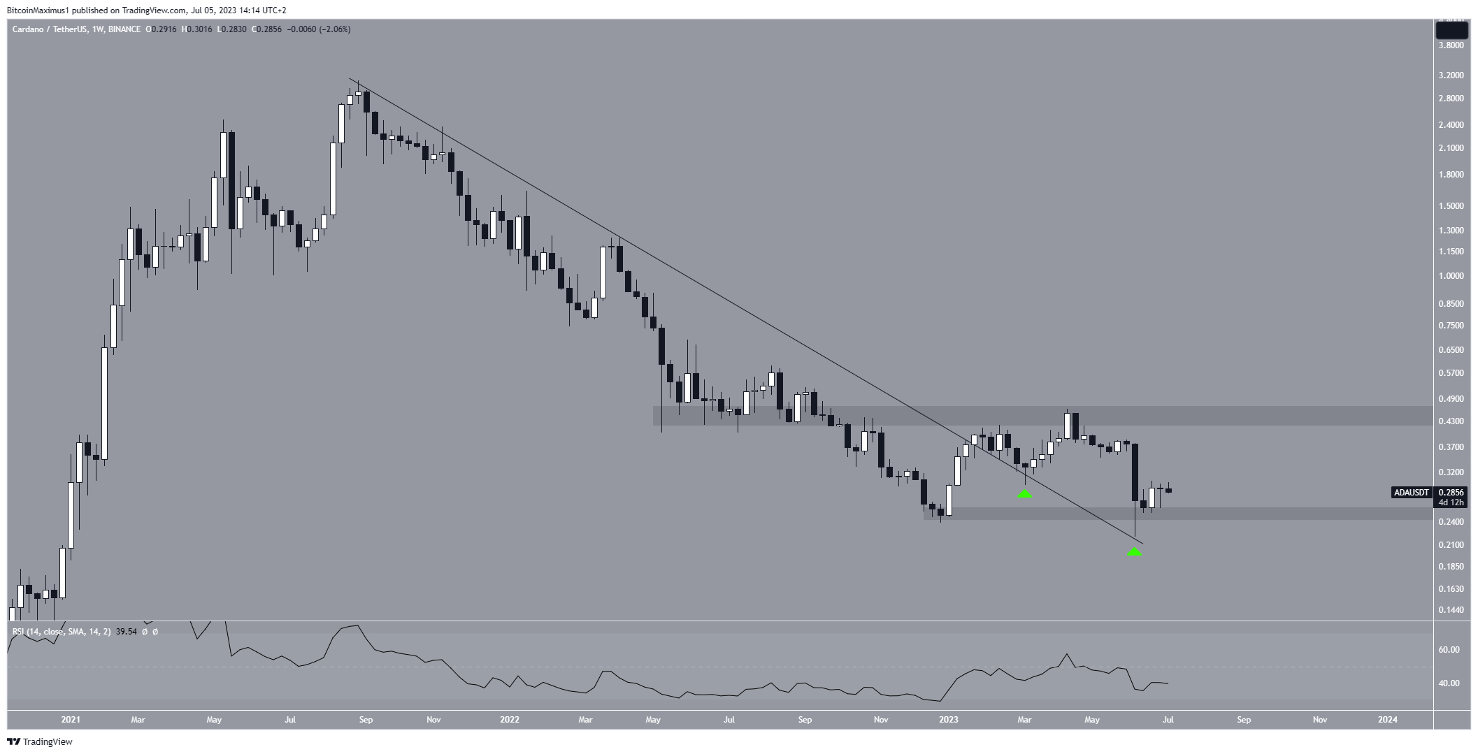 A análise técnica do gráfico semanal mostra que o preço da ADA saiu de uma linha de tendência de baixa de longo prazo no início de janeiro. Esta linha estava em vigor desde janeiro. Portanto, esperava-se que houvesse um salto significativo.