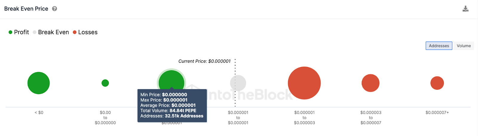 As 32.500 carteiras compraram um total de 84,8 trilhões de tokens PEPE a um preço médio de US$ 0,0000010. Isso pode desencadear uma recuperação de preço se eles comprarem desesperadamente mais tokens para evitar que suas posições fiquem no vermelho.
