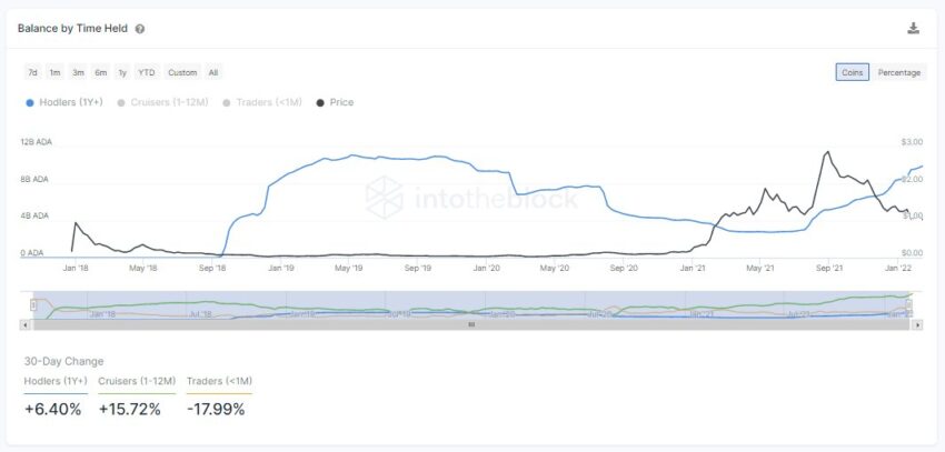 O valor mantido pelos investidores de longo prazo da Cardano (ADA) é o maior em mais de dois anos.