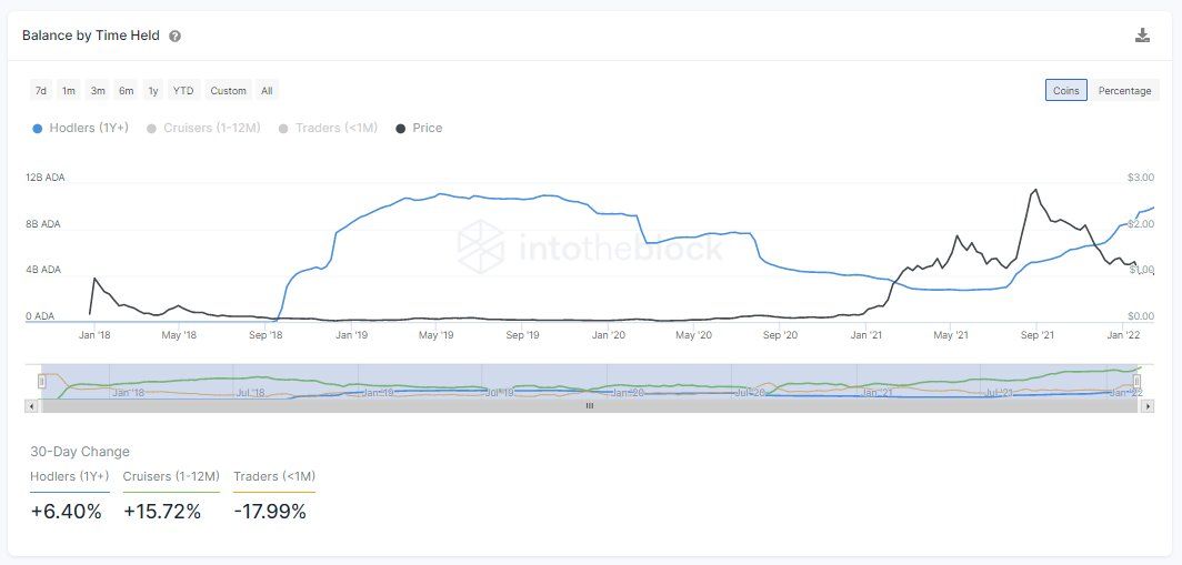O valor mantido pelos investidores de longo prazo da Cardano (ADA) é o maior em mais de dois anos.