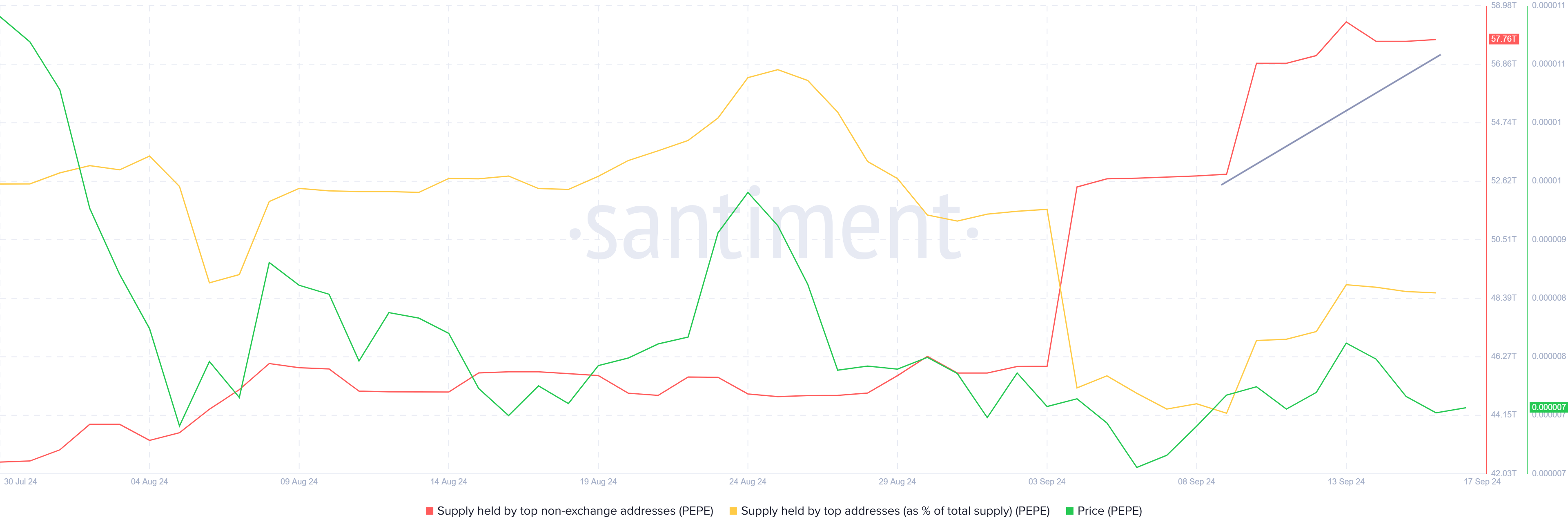 A acumulação contínua por esses detentores chave poderia ser o único fator que impede uma grande queda no preço. Se esses grandes detentores de carteira continuarem comprando nos níveis atuais, eles podem evitar perdas adicionais e possivelmente ajudar o PEPE a recuperar algum ímpeto ascendente.