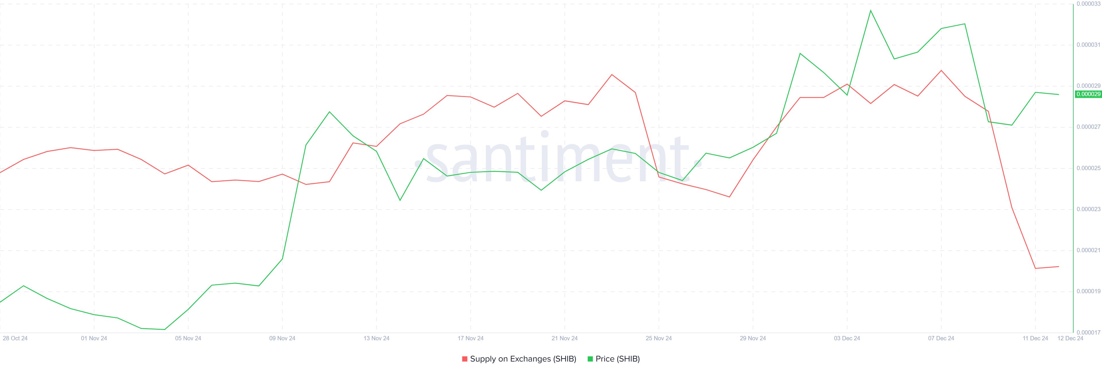 Nos últimos cinco dias, a oferta de Shiba Inu nas exchanges diminuiu em massivos 4 trilhões de SHIB, valendo mais de US$ 115 milhões aos preços atuais. Essa redução significativa na oferta disponível sugere que os investidores estão acumulando fortemente. Isso reflete uma crença subjacente de que SHIB eventualmente experimentará uma apreciação substancial de preço.