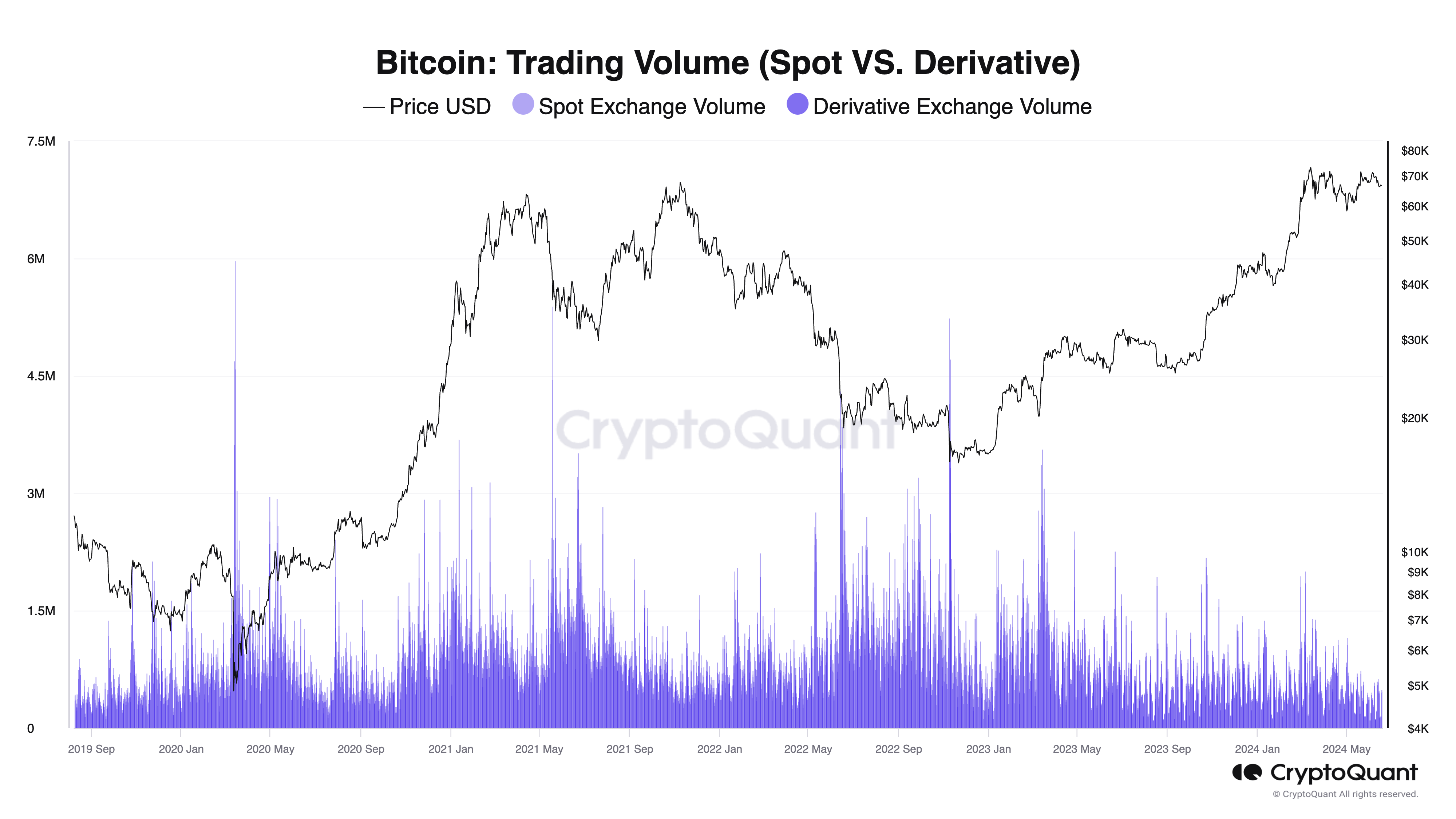 Somando-se a essa perspectiva, o analista cripto Cyclop enfatiza a ausência de entusiasmo do varejo. Ele aponta, por exemplo, que os volumes atuais de trading são significativamente menores do que os de 2021, apesar do preço mais alto do Bitcoin.