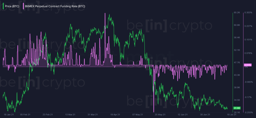 No entanto, os usuários têm uma opinião diferente. Por exemplo, a taxa de financiamento de Bitcoin na BitMEX não permaneceu mais na faixa neutra de 0,01%.
