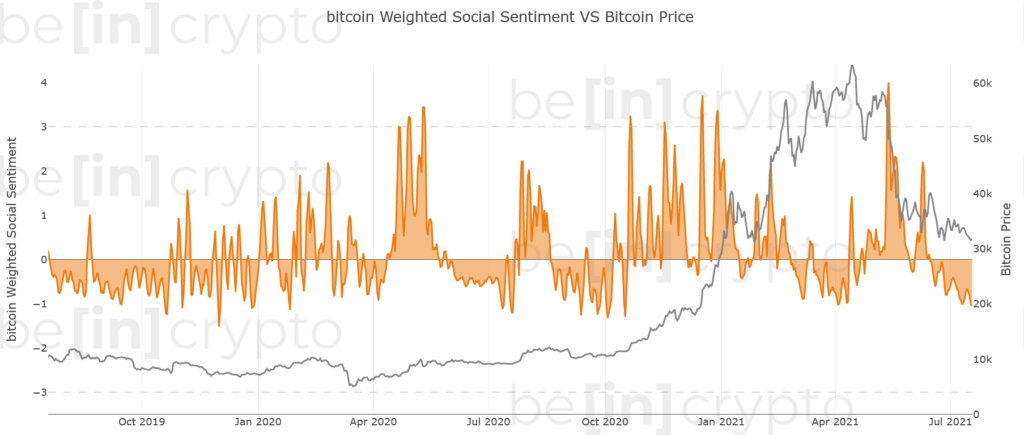 A frequência de mensagens contendo as palavras “baixa” e “baixista” está aumentando nas redes sociais. No entanto, os analistas apontam que o anterior sentimento otimista dos usuários não foi um catalisador para a alta de preços vistas no mercado. Dessa forma, a Santiment vê vantagens no atual pessimismo do mercado.