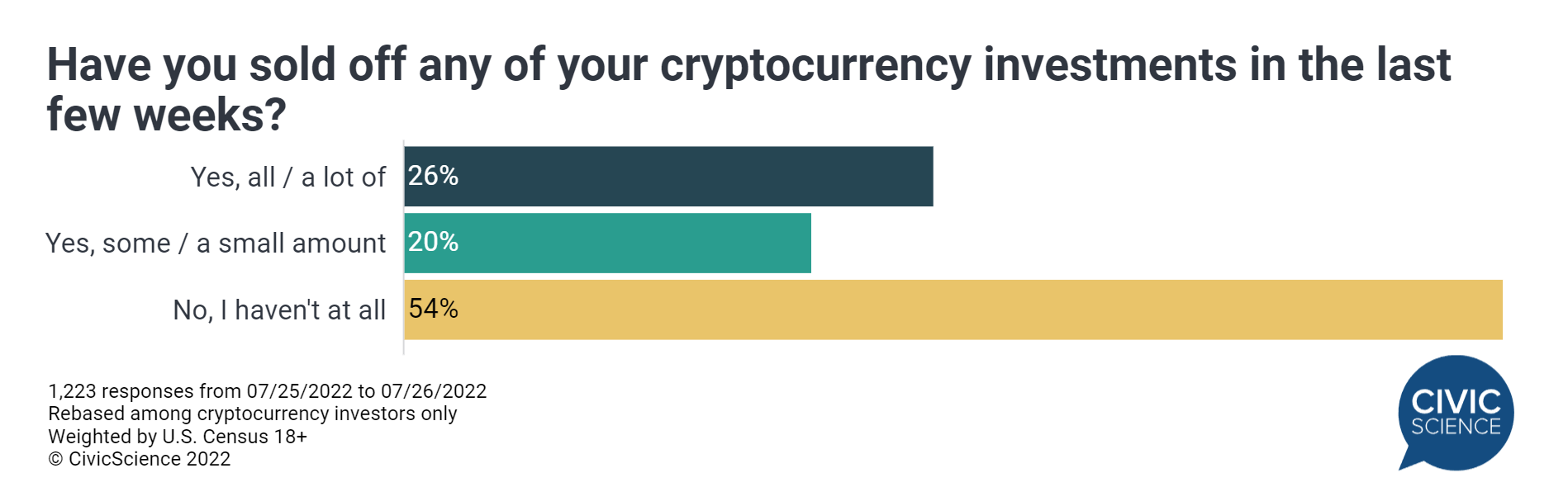 Uma pesquisa publicada pela Civic Science, em julho, indicou que 54% dos investidores não venderam suas criptomoedas durante o despejo do mercado em maio.