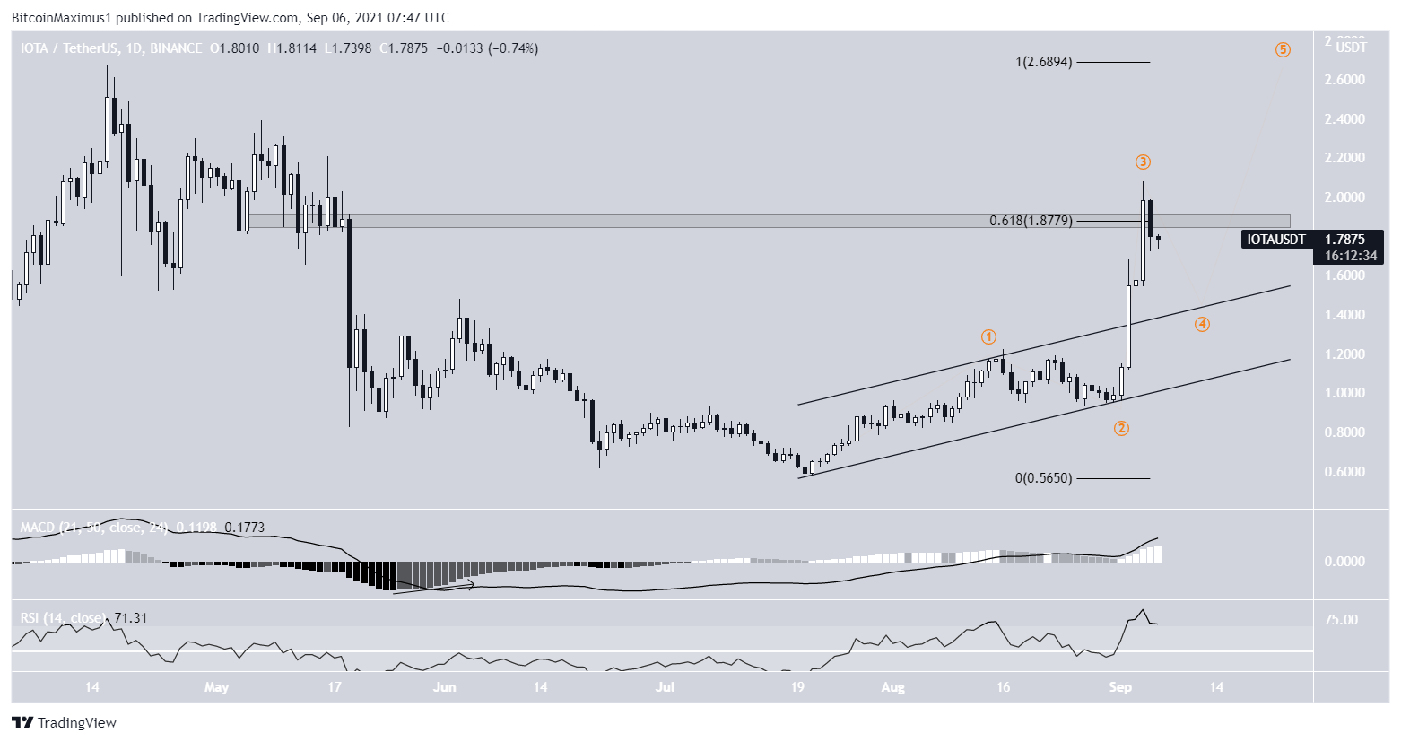O IOTA está crescendo desde o dia 20 de julho. A criptomoeda criou um topo maior do que o anterior na quinta-feira (2), o que acelerou ainda mais este movimento.