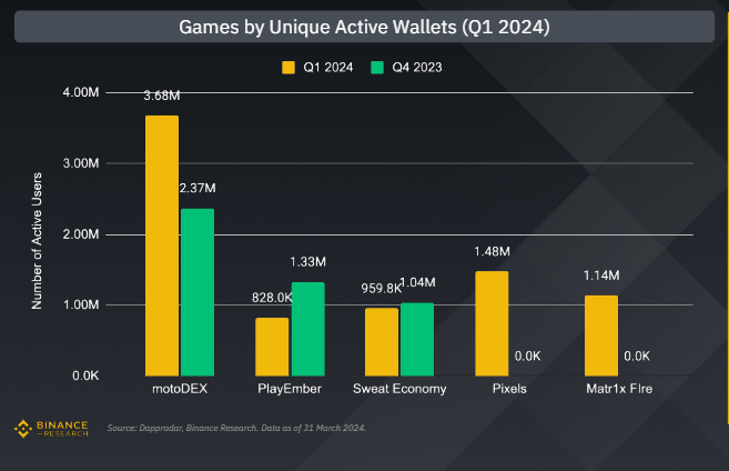 A equipe de pesquisas da exchange detalhou no relatório a evolução e as tendências do mercado de games no primeiro trimestre de 2024. Para se ter uma ideia, projeções do Statista indicam um crescimento médio anual de 12,1% no mercado global de jogos até 2027. Estima-se que em 2024 o setor movimentará US$ 242,7 bilhões.