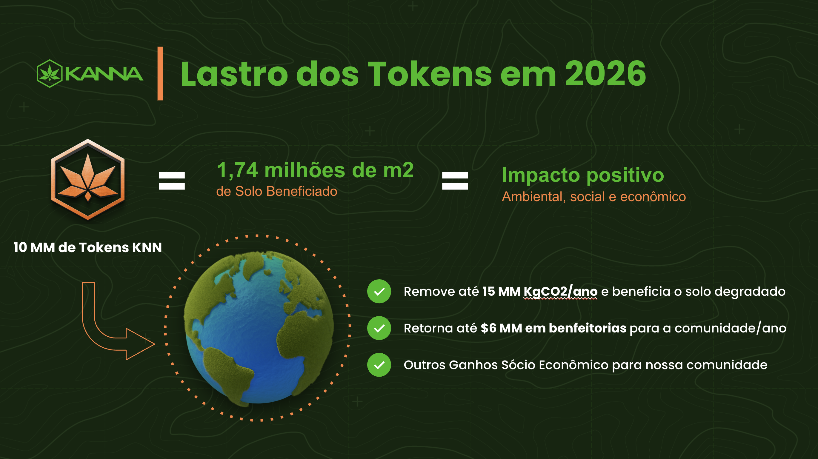 O token KNN é o ativo digital da Kanna que corresponderá à uma área de cultivo de cânhamo, agregando ao token um lastro em impacto ambiental e social no mundo real.