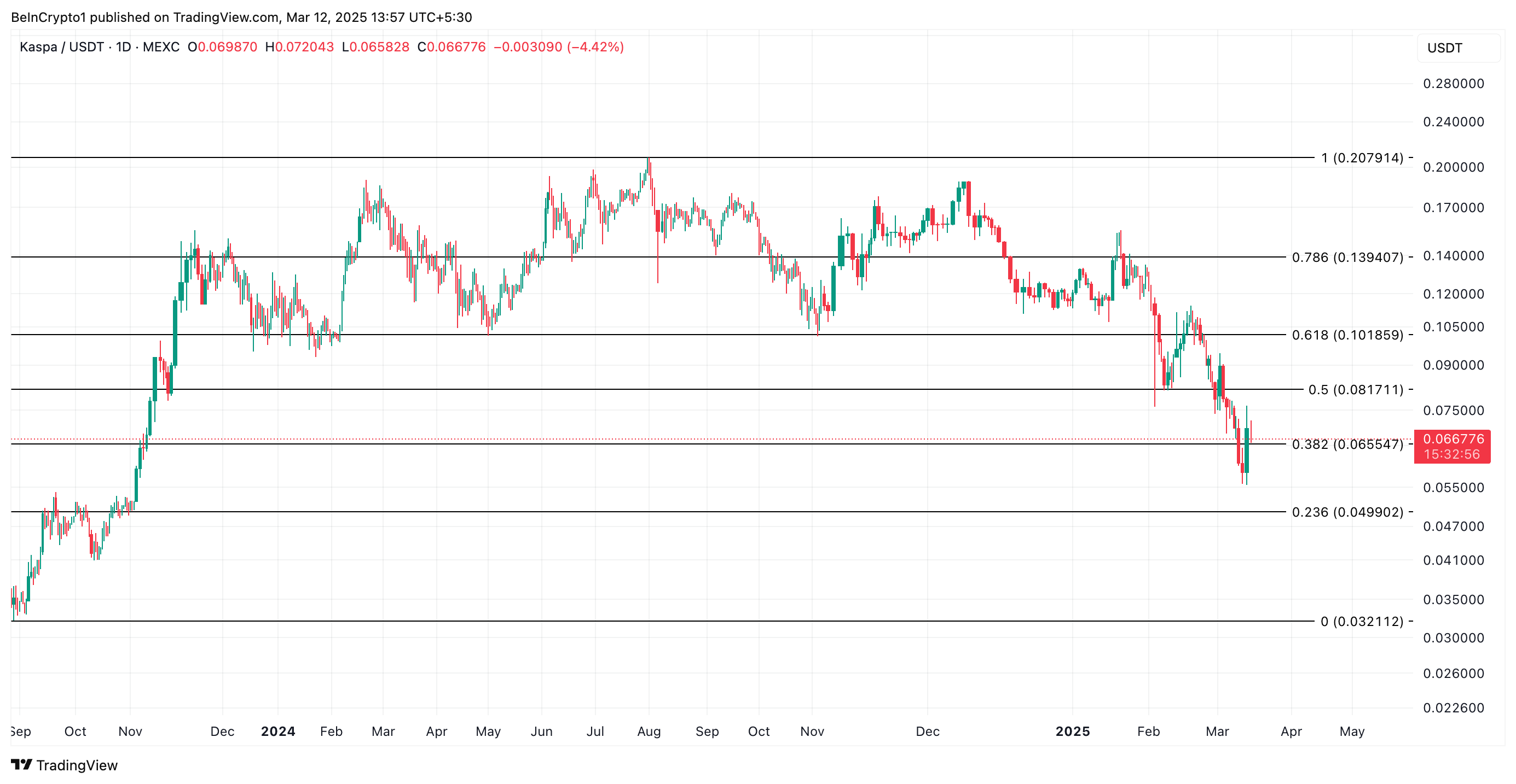 Kaspa testa suporte crítico a US$ 0,065 – rompimento ou queda à frente?