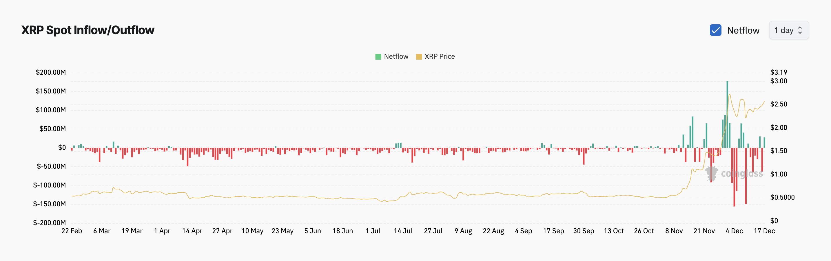 Assim, o preço do XRP subiu quase 10% desde que a notícia foi divulgada. No entanto, essa tendência de alta levou alguns investidores a venderem seus tokens, como refletido pelos crescentes influxos para exchanges. Segundo a Coinglass, os influxos de XRP para exchanges de criptomoedas totalizaram US$ 28 milhões hoje (17).