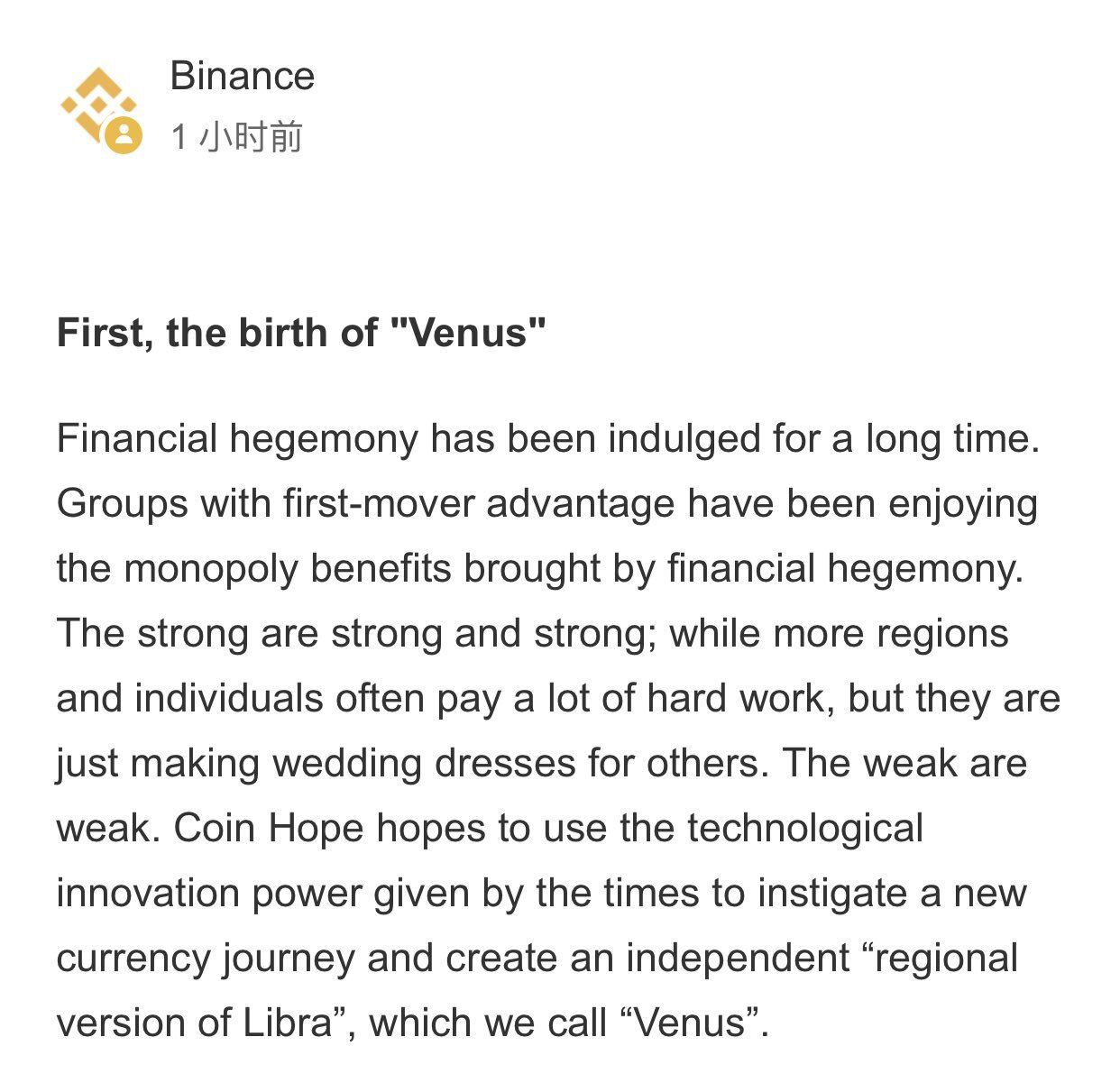 Fazendo isso, a Libra parece que está seguindo os passos da Binance, que logo após o anúncio da Libra 1.0 anunciou a Vênus, sua própria criptomoeda de grande escala.
