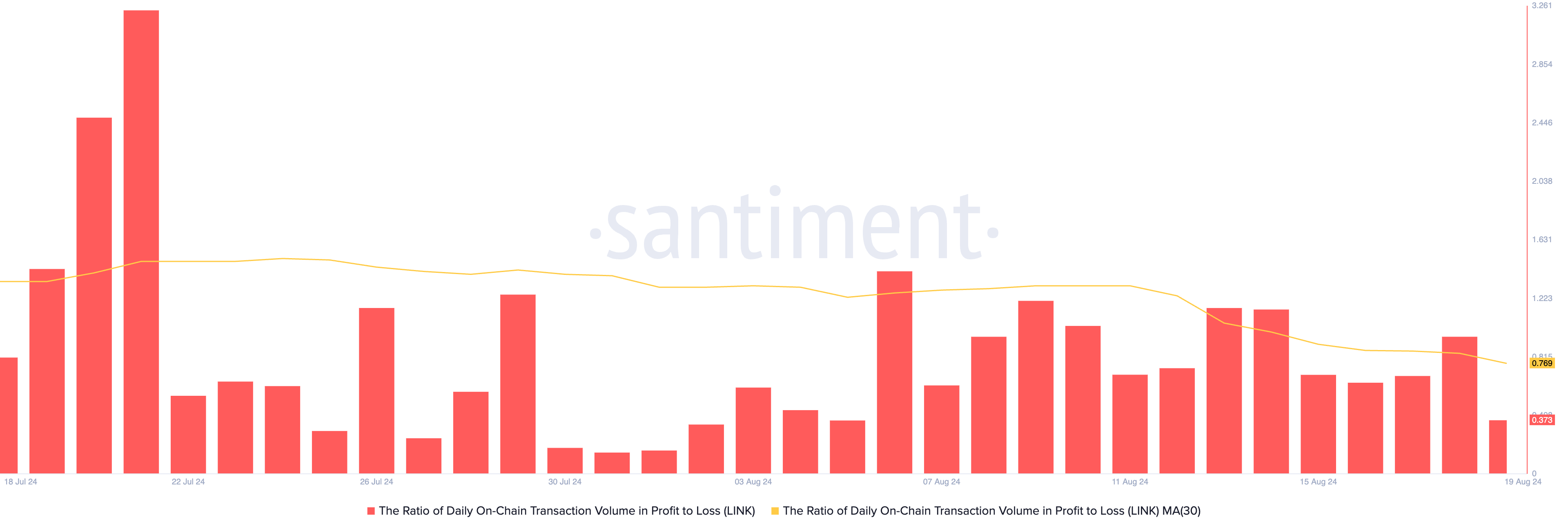 No caso do LINK, os vendedores estão hesitantes em se desfazer do ativo devido ao fato da maioria das transações terminar em perdas e não em lucros.