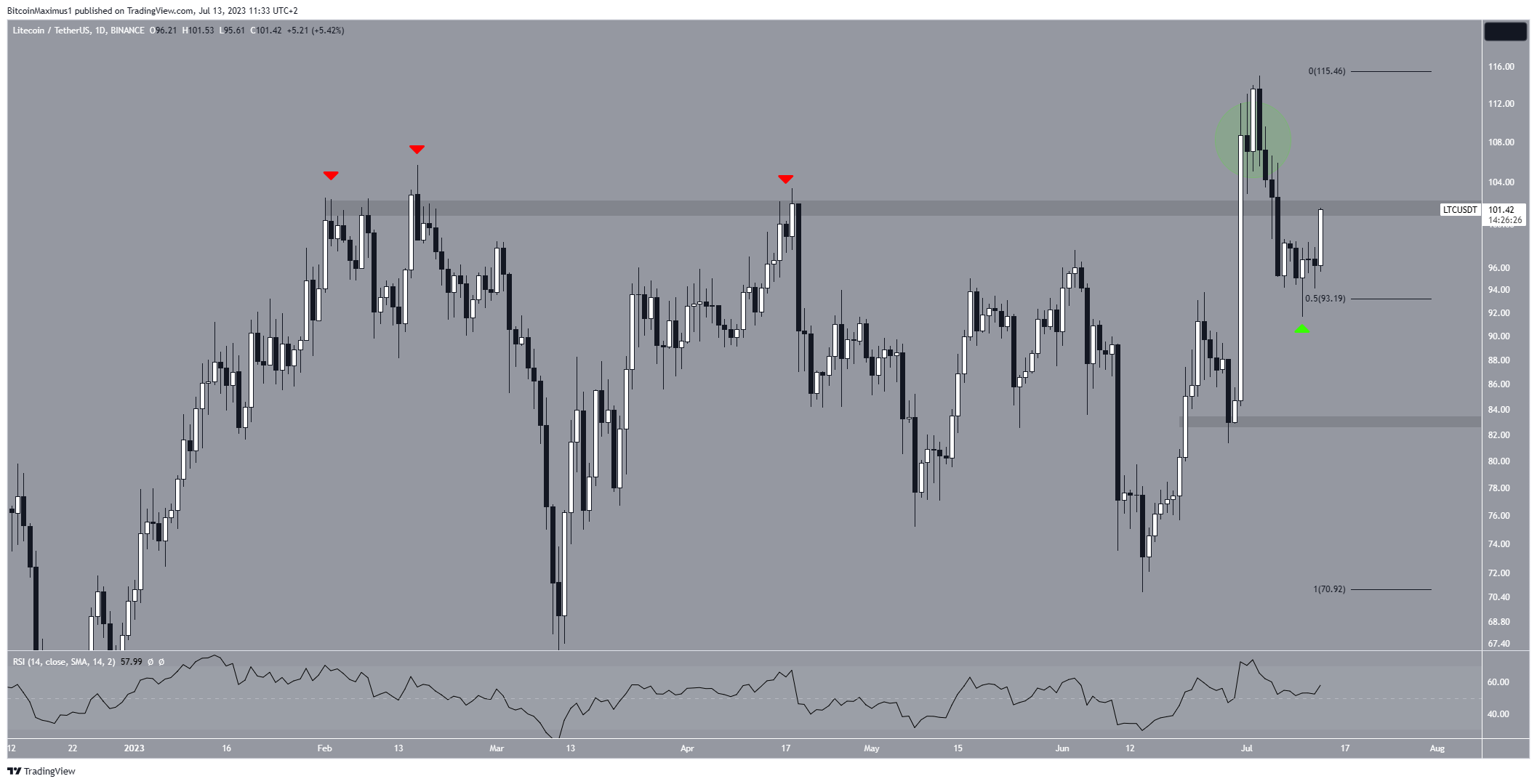 O Litecoin (LTC) está em tendência de alta desde 10 de julho, conseguindo superar o nível de US$ 100, possivelmente validando-a como suporte.
