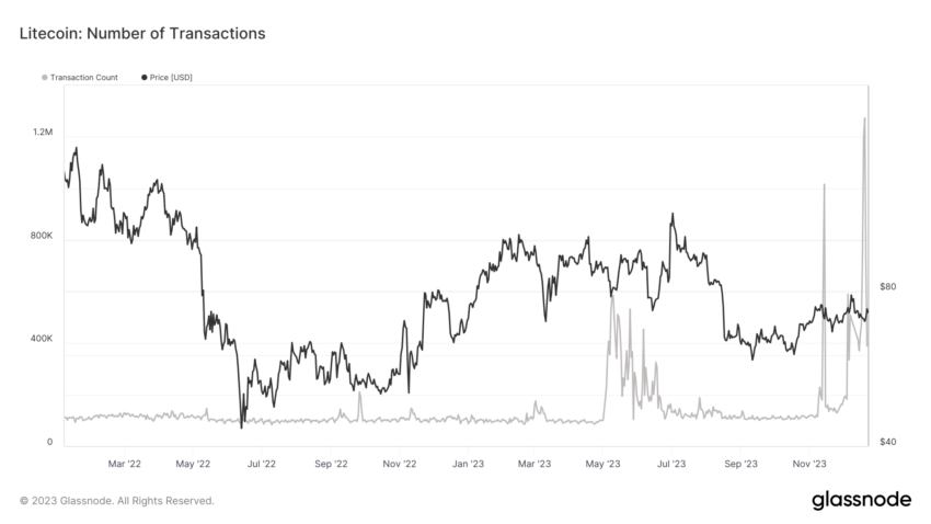 De acordo com dados on-chain da Glassnode, aproximadamente 1,2 milhão de endereços de LTC foram gerados no dia 20 de dezembro. No entanto, os números caíram para cerca de 800.000 até o momento desta publicação.