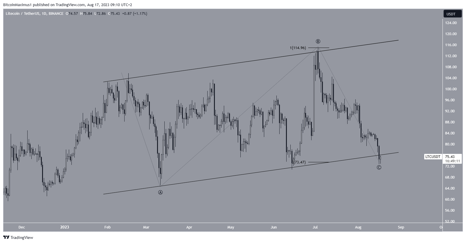 A Litecoin (LTC) está em tendência de queda desde o início de julho, quando desviou acima da área de resistência horizontal de US$ 100.