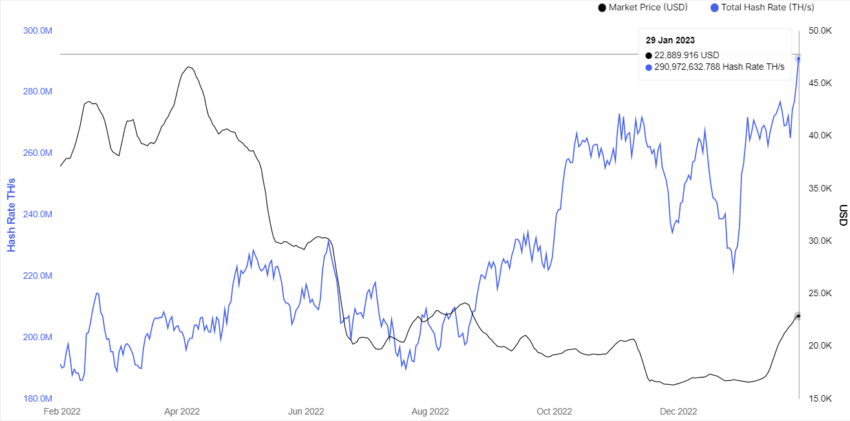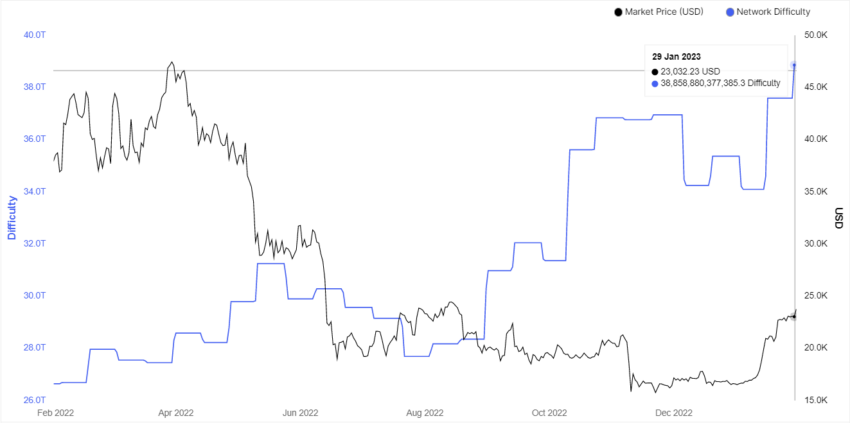O lucro da mineração de Bitcoin (BTC) aumentou US$ 8 milhões e a dificuldade de mineração, 5% em janeiro de 2023. Isto ocorre porque o aumento dos preços da criptomoeda incentivou uma maior implantação de hardware de mineração.
