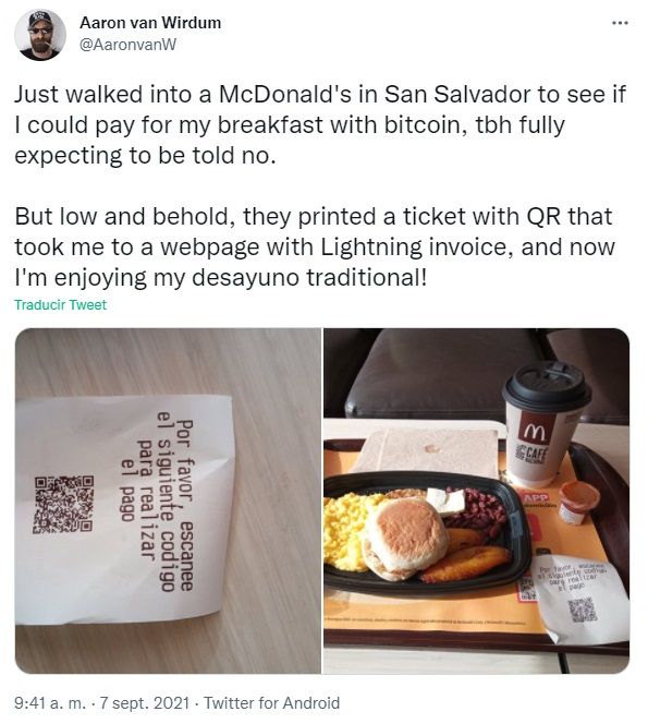 “Acabei de entrar em um McDonald’s em San Salvador para ver se poderia pagar meu café da manhã com Bitcoin, esperando que eles dissessem não.