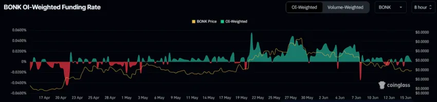 No caso da BONK, a taxa de financiamento tem flutuado consistentemente de positiva para negativa.