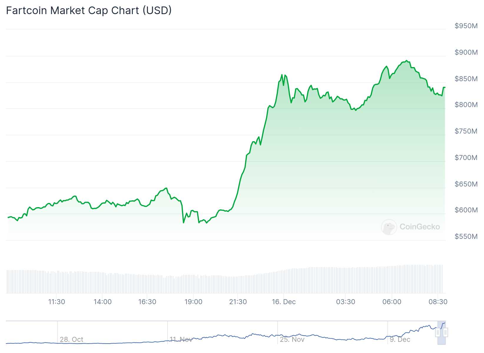 Em 12 de dezembro, o valor de mercado da Fartcoin ultrapassou a marca de US$ 500 milhões, o que gerou especulações que a memecoin estava prestes a uma correção significativa. No entanto, isso não ocorreu, visto que a demanda permaneceu extremamente alta, elevando o preço ainda mais.