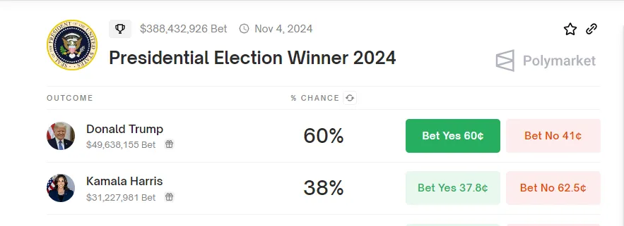 Apesar disso, o sentimento mudou para as pesquisas de Kamala Harris. Com base no mercado de previsões da Polymarket, as chances são de até 38%, aproximando-se efetivamente de Donald Trump. Essa mudança é principalmente uma aposta especulativa no futuro político de Harris.