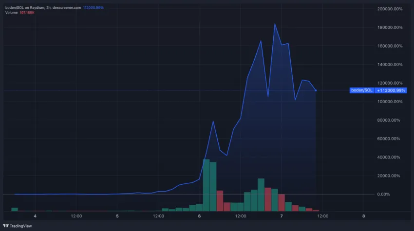 A memecoin “Jeo Boden” proporcionou um retorno de 1.000 vezes aos seus primeiros investidores. A valorização aconteceu uma semana após o lançamento do token.
