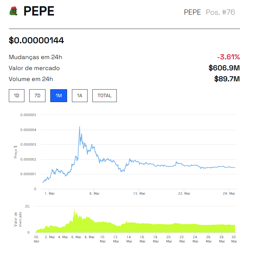 Entretanto, analistas apontam que o movimento do PEPE se caracteriza como um movimento natural de retração do mercado antes de um novo impulso de alta.