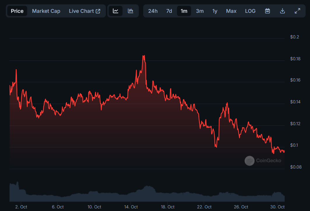 Apesar de já possuir um market cap de quase US$ 72 milhões, a BULL não conseguiu gerar tração em outubro. Com uma queda de 37,5% no mês, o token está 55% abaixo da sua máxima histórica registrada em agosto.