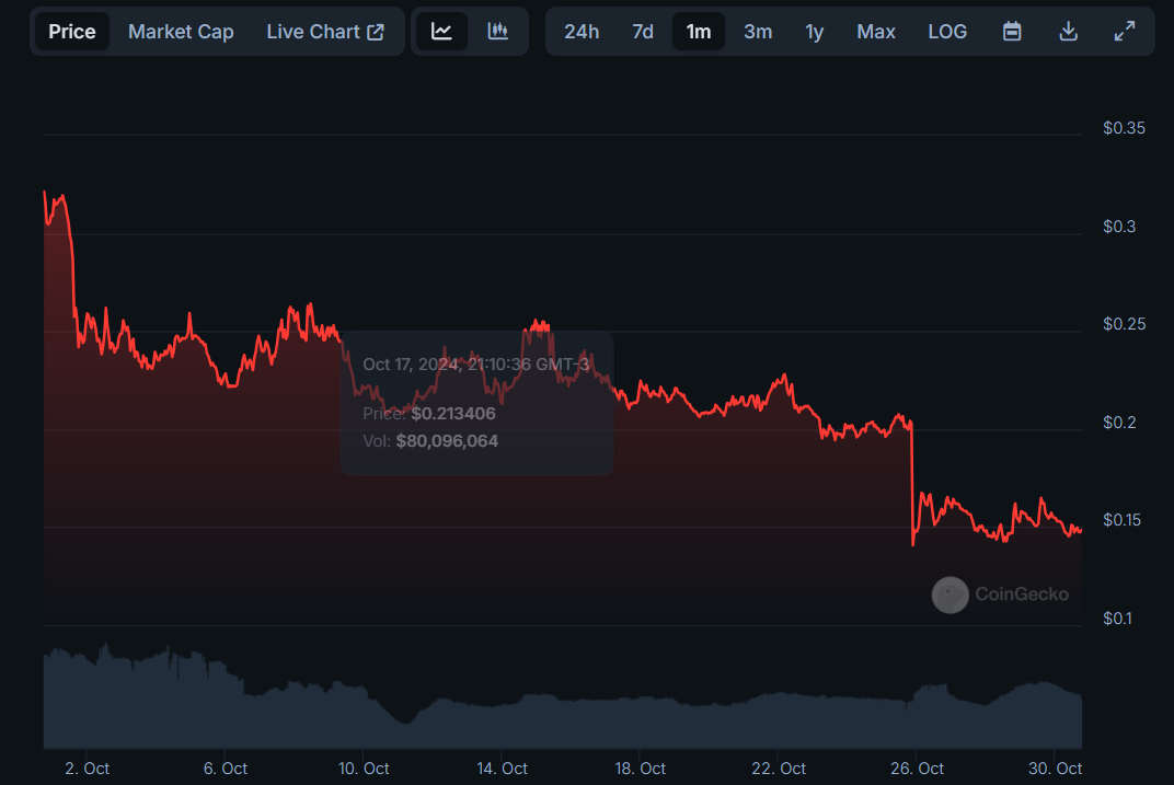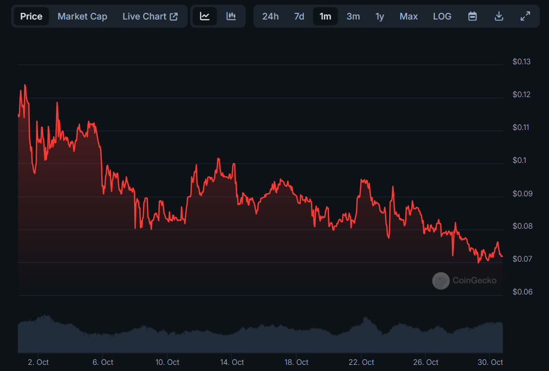 O BeInCrypto Brasil conversou com analistas e representantes de exchanges para entender o que está por trás dessa volatilidade. Confira as cinco memecoins que com maiores quedas em outubro, segundo dados do CoinGecko.
