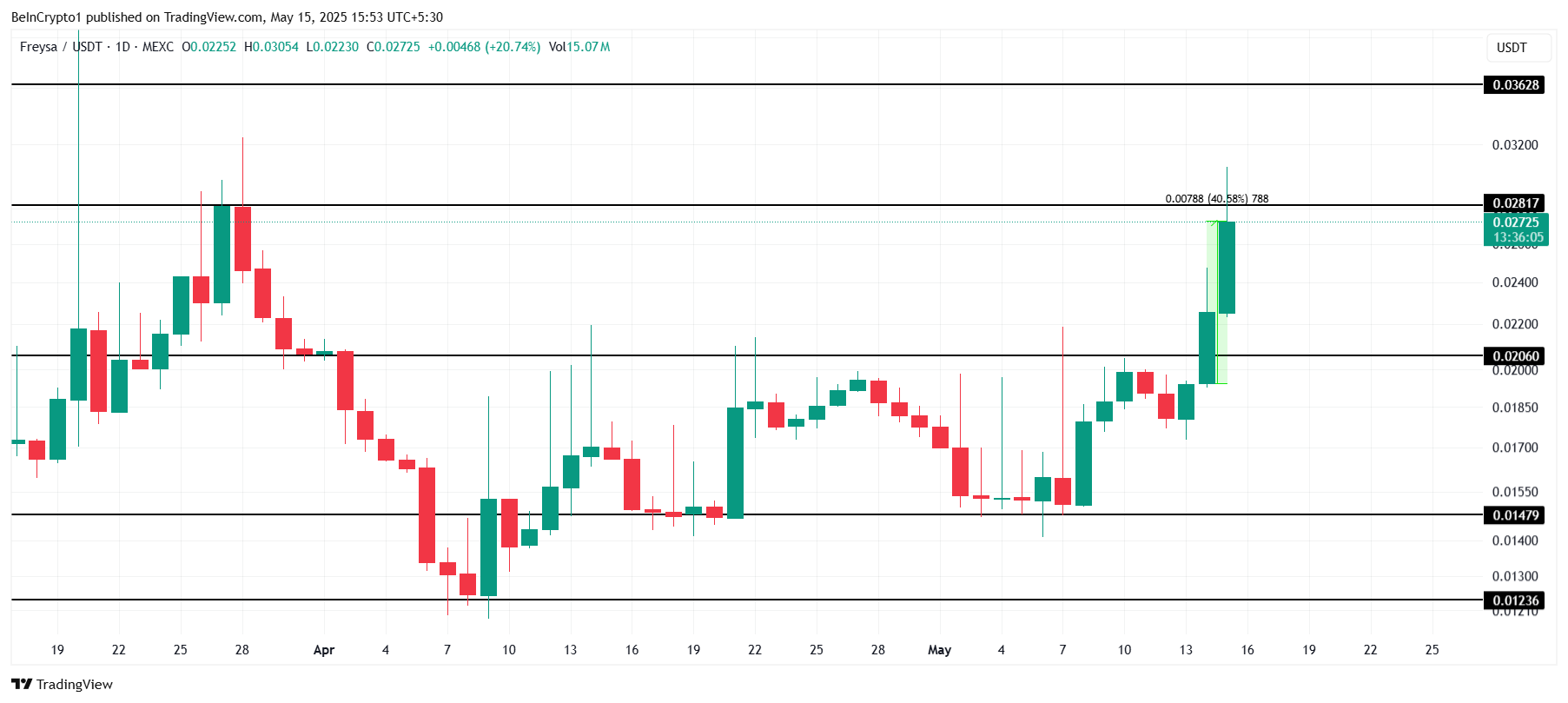 O preço da FAI subiu 40,5% nas últimas 24 horas, sendo negociada a US$ 0,0272. No entanto, está lutando para ultrapassar o nível de resistência de US$ 0,0281. Embora esteja perto de recuperar as perdas de março e abril, a altcoin ainda precisa superar obstáculos para manter seu avanço entre as memecoins.