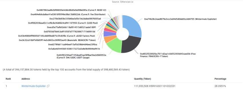 Ele fornece 28% da liquidez no pool de stablecoins do projeto DeFi. E faz isso com fundos roubados. Isso equivale a US$ 114 milhões de um total de US$ 409 milhões, de acordo com dados do Etherscan.