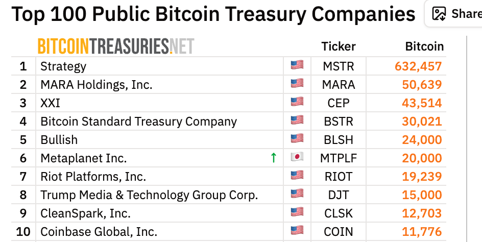 A empresa japonesa, Metaplanet, aumenta suas reservas de Bitcoin para além de 20 mil BTC, superando a mineradora americana Riot Platforms e tornando-se a primeira empresa não americana a entrar no grupo das seis maiores detentoras corporativas globais.