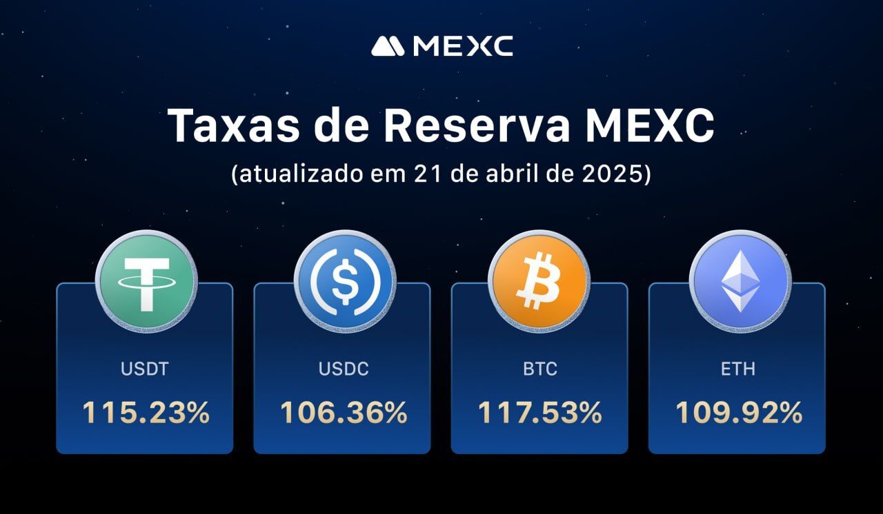 Até abril de 2025, as taxas de reserva da MEXC seguem apresentando ampla cobertura para todas as principais criptomoedas: