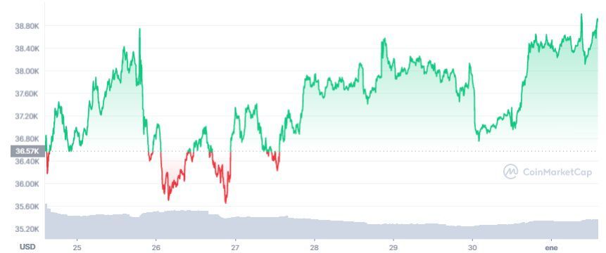 No momento desta publicação, o Bitcoin estava sendo negociado a US$ 38.934, de acordo com dados do CoinMarketCap. Esse valor representa um crescimento de 4% nas últimas 24 horas, mas permanece 43% abaixo da alta histórica de quase US$ 69.000 registrada em novembro de 2021 .
