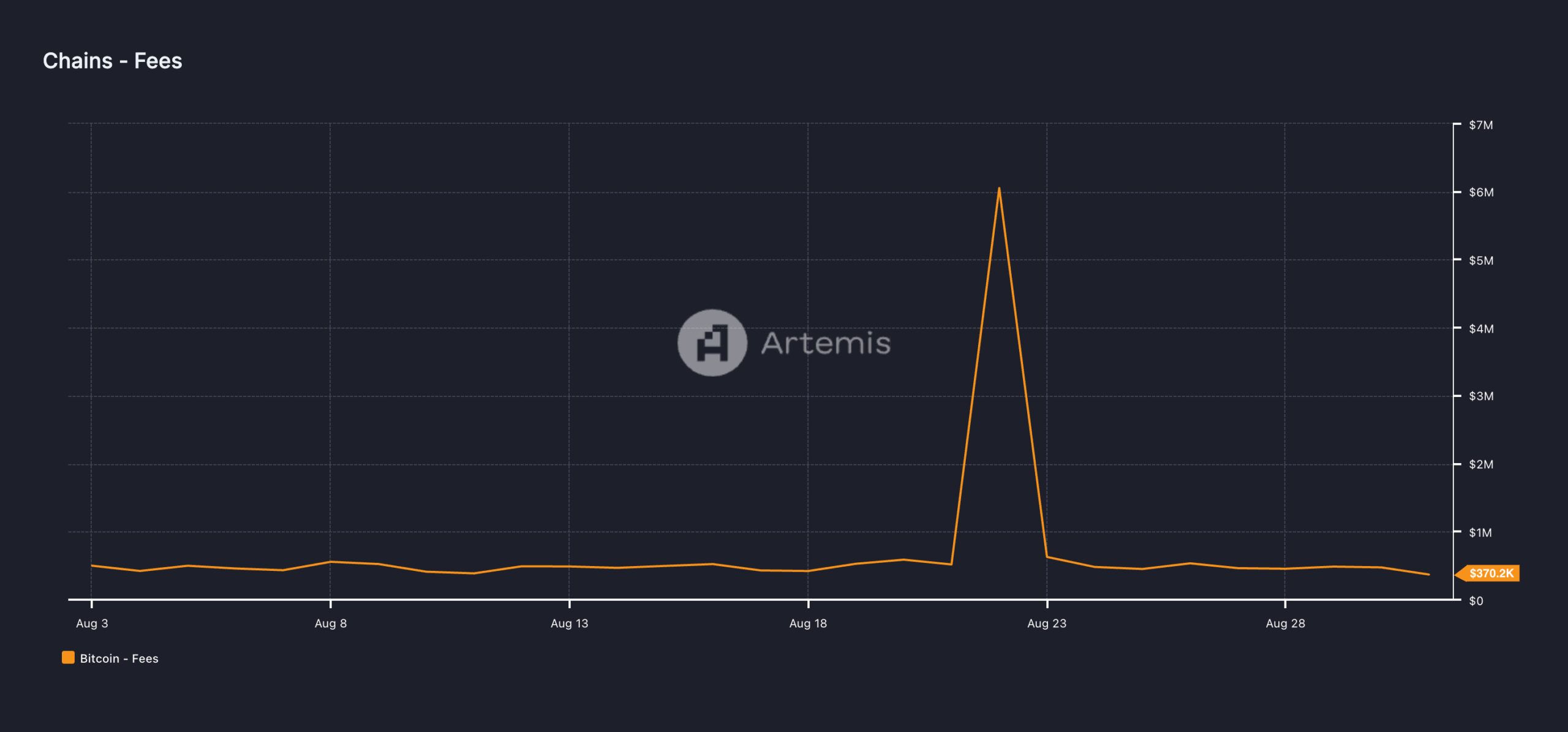 As taxas de transação, por outro lado, são pagas pelos usuários para ter suas transações incluídas em um bloco. Dados da Artemis mostram por exemplo, que o número de endereços únicos que completaram pelo menos uma transação na blockchain em agosto totalizou 421.220, caindo 10%.