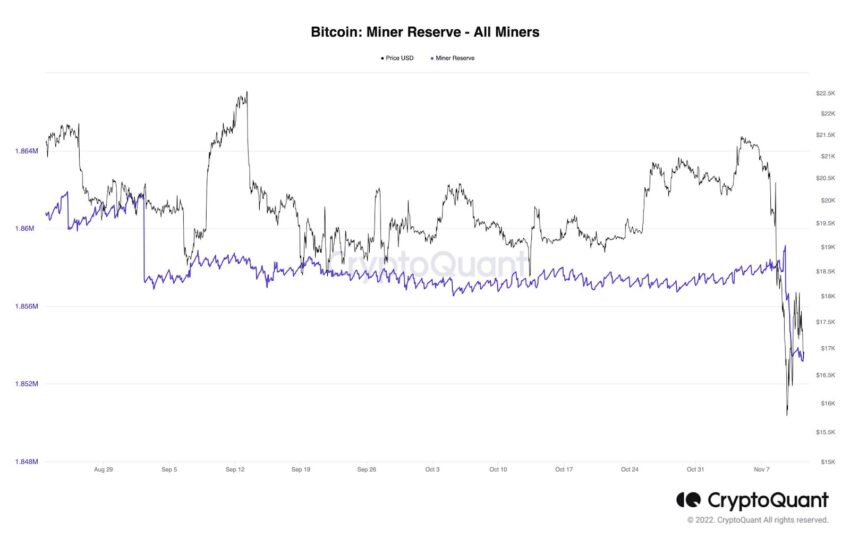 Nos últimos dias, vimos um declínio acentuado nas reservas dos mineradores de Bitcoin. Assim, parece que as quedas como resultado do FUD associado à falência da FTX foram impulsionados principalmente pela capitulação dos mineradores.