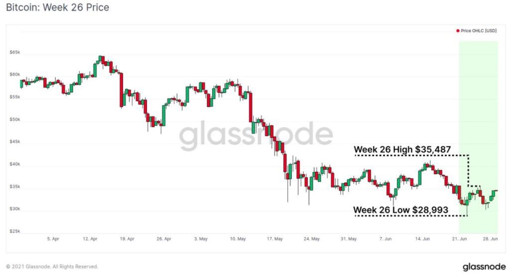 A Glassnode também afirma que houve uma queda substancial no preço do Bitcoin nas primeiras semanas de junho após produtos de investimento registrarem saídas de US$ 141 milhões.